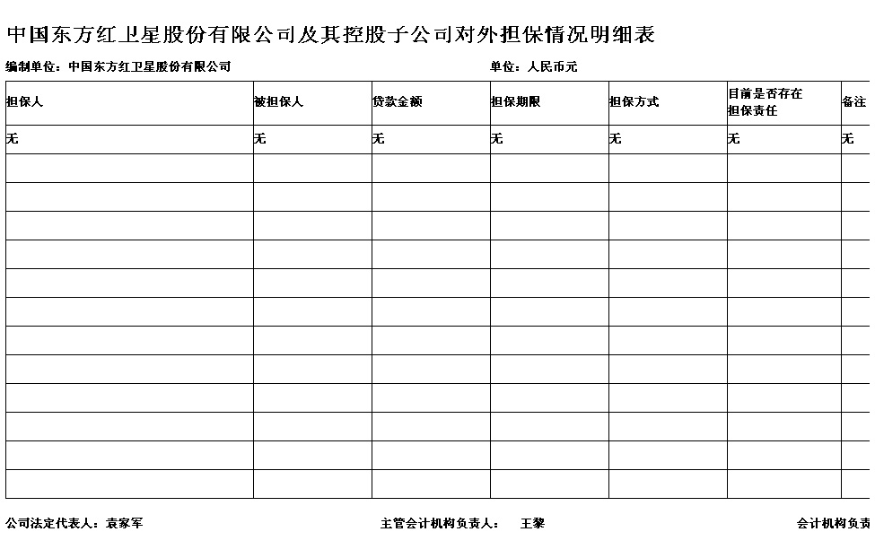 2、中國東方紅衛星股份有限公司及其控股子公司對外擔保情況明細表